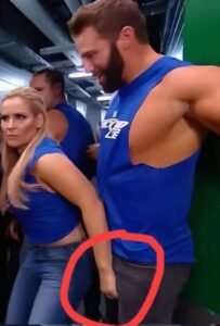 Amidst the staged anarchy, cameras followed the invading SmackDown roster through the curtain. In one shot, Ryder, a key part of the SmackDown contingent, was captured in a wide-angle, unguarded instant. Pumped up by the surge of the invasion, the roar of the crowd, and the thrill of the crossover event, Ryder’s… ahem… physiological reaction to the high-stakes excitement became visibly apparent through his wrestling trunks.
